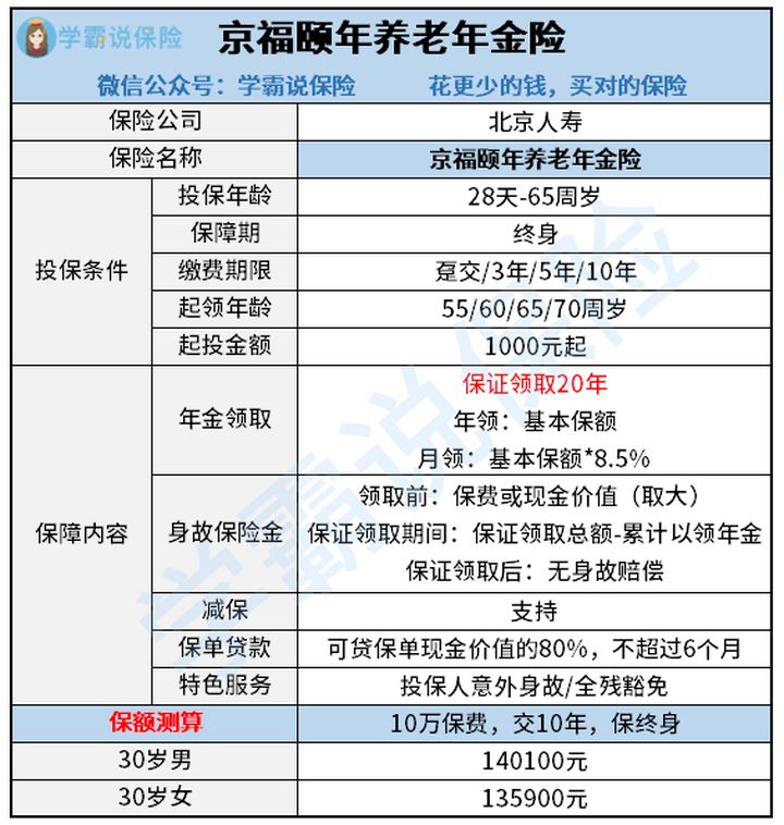 北京京福颐年养老年金目前仍在出售,其收益如何?是一款好的年金险吗?学姐今天帮你测评一下。
