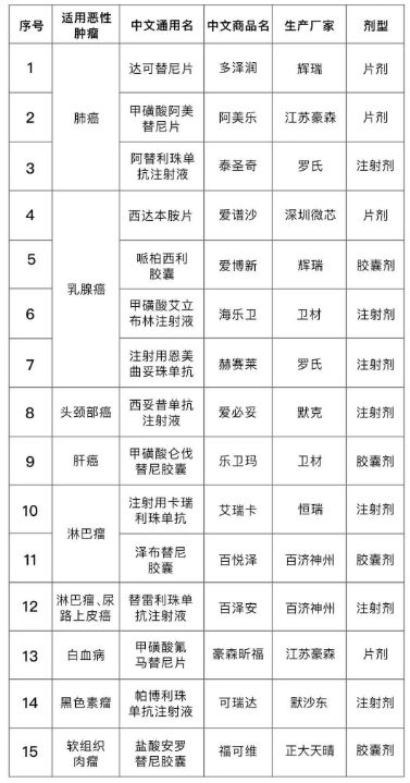 2、15种特定恶性肿瘤药品医疗