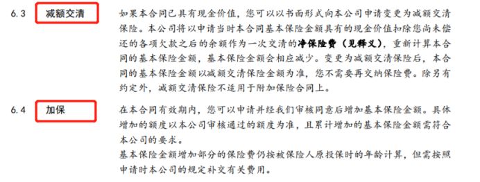 如果在保障期间中途想要取一笔钱用作教育资金、创业资金、婚嫁资金、养老金等等,又不想退保,可以通过减保的方式取出部分保额,用来解决这个需要用钱的情况!