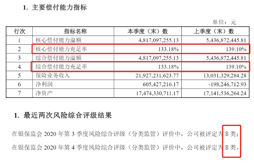 而根据恒大人寿公司官网披露的信息来看,最新两季的核心/综合偿付能力分别在133.18%和139.10%,比保险协会的标准值高,且两次风险评级都为B级,也是达到了合格的标准,业务水平处于一个中等的级别。