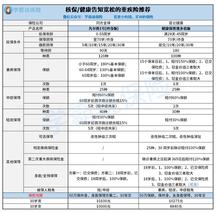 学姐整理了一篇健康告知比较宽松的产品类别,可以自行对比情况选择哦:
