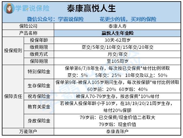 那学姐就以泰康赢悦人生年金险为例,帮大家分析一下年金险为什么适合养老?