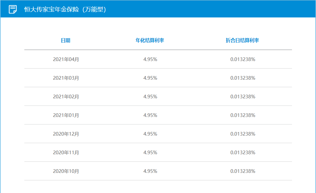 恒大金状元作为一款专为孩子量身打造的年金,还自带了传家宝万能账户。如果年金不领取,则会自动进入万能账户进行二次复利增值。这项功能可以让孩子从小学会理财,往后需要用到时,可以向保险公司申请提现使用。不过,传家宝万能账户的保底利率为2.5%,表现比较中规中矩。今年的年化率相比去年有所下降,但也算得上优秀。