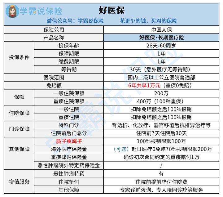 我们看到好医保的保障内容是非常全面的,一般住院、重疾住院、质子重离子保障都有覆盖到。