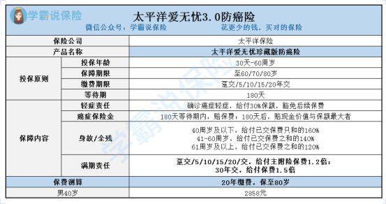 二、爱无忧3.0防癌险的缺陷是哪些?1、保费高,保障内容不全面