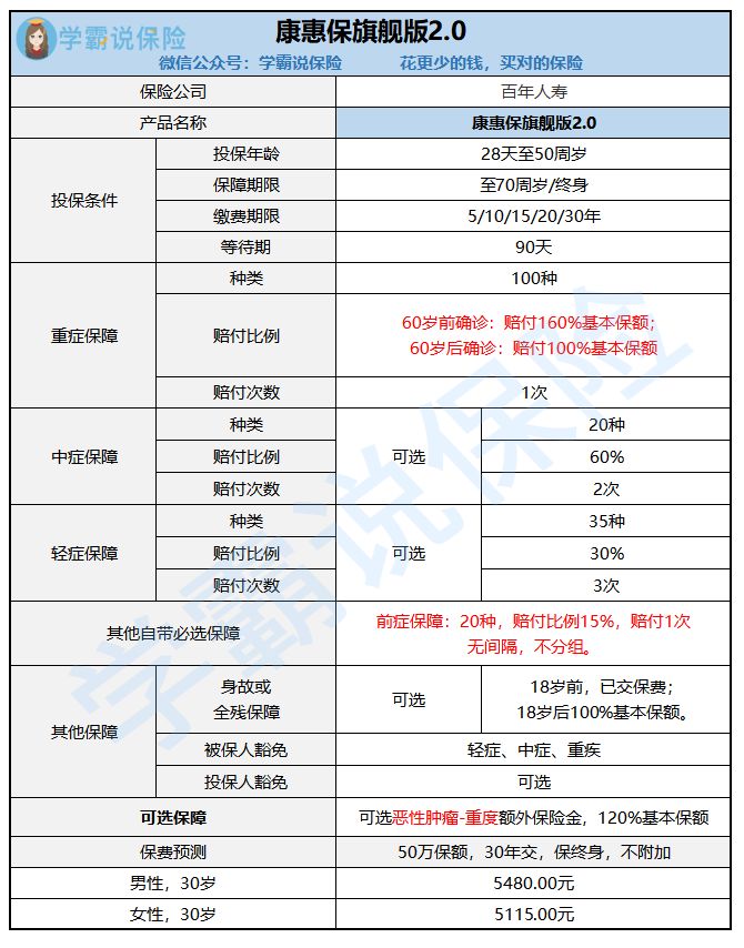 百年康惠保是百年人寿保险公司推出的线上购买的重疾险产品,可以在各大互联网保险平台购买。这个系列有百年康惠保、康惠保2020版、百年康惠保旗舰版重疾险、百年康惠保旗舰版2.0等产品,目前最新且在售的是百年康惠保旗舰版2.0重疾险,那我们今天就来看看这款重疾险值不值得购买,具体保障什么。