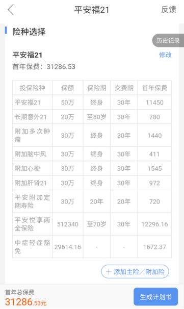 平安福2021的可选保障就真的太多了,你可以附加意外险、寿险两全险等其他险种,还可以选择附加被保人豁免、恶性肿瘤等保障。