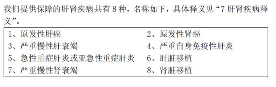 咱们买重疾险,那就重点关注下它可选保障中的重疾保障。平安福2021可附加恶性肿瘤多次赔、脑中风后遗症、心梗、肝肾病保障。恶性肿瘤可给付2次保险金,但需间隔期3年。严重脑中风后遗症和较重急性心肌梗死都是按合同约定给付对应的保险金。肝肾病包括8种高发肝肾病: