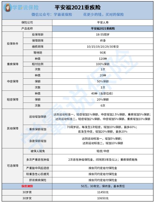 平安福2021是平安保险在2021年1月上市的新定义重疾险,是平安福系列第九次升级后的产品。学姐将平安福2021的保障内容做成了表格图,方便大家了解: