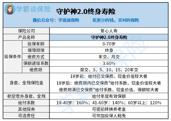 爱心人寿守护神2.0终身寿值不值得买,我这里有一份产品的详细信息,先了解一下吧!