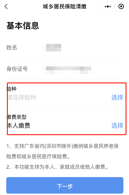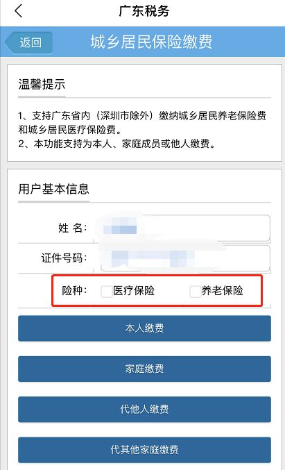 第四步:找到个人参保缴费的类型如城乡居民社保缴费