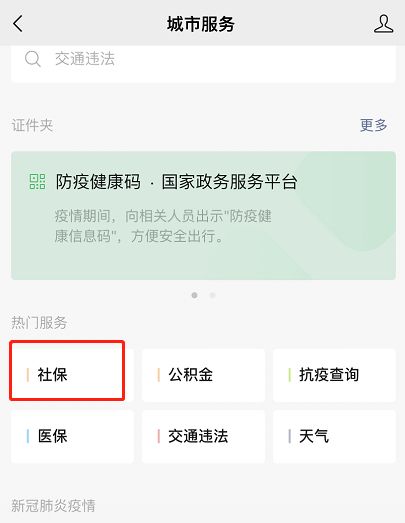 第二步:进入“城市服务”后首先先定位到本人社保参保的城市再找到“社保”
