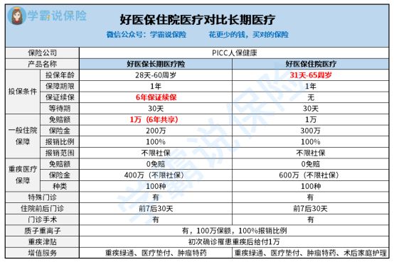 总的来说:好医保长期医疗和住院医疗的保障内容都十分全面,但是好医保住院医疗不保证续保,这样对于身体状况容易发生变化的人群来说,很难获得稳定的医疗险保障。而且好医保长期医疗的免赔额是6年共享一万,比好医保住院医疗的1年1万免赔额更加好。