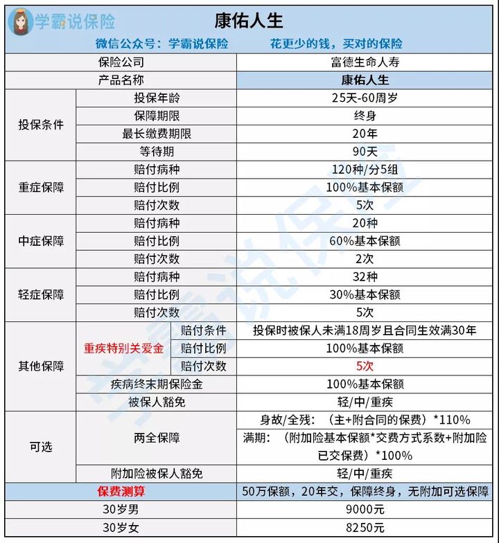 废话少说,学姐先行奉上康佑人生的保障精华图: