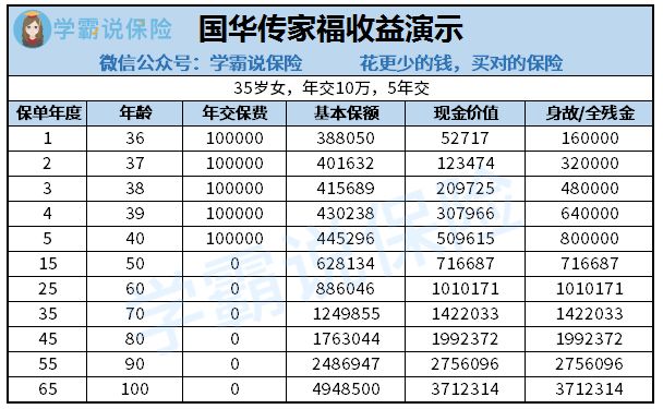 下面以张女士的投保案例来看看传家福尊享版的收益演示: