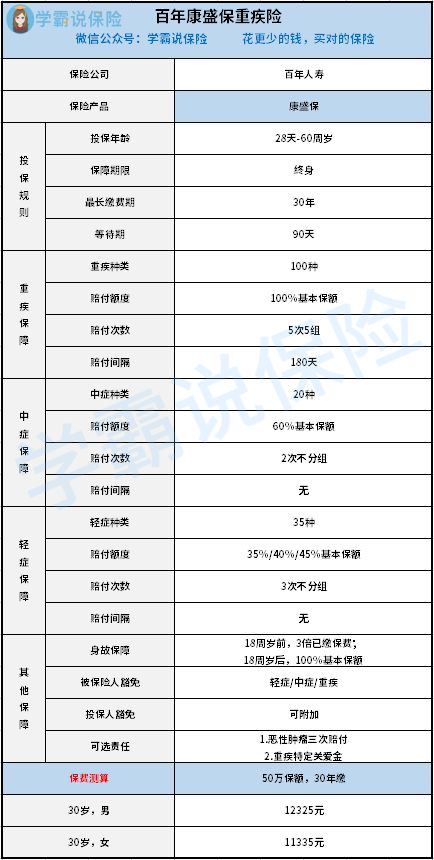 百年康盛保的保障图学姐已经整理好,请各位看官查收: