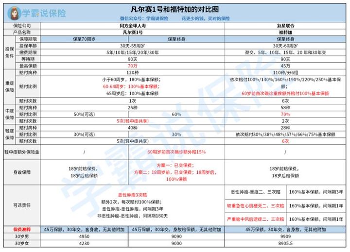凡尔赛1号和福特加都是市面上非常热销的重疾险,两款产品各有各的优势,有不同需求的可以结合自身情况选择购买。