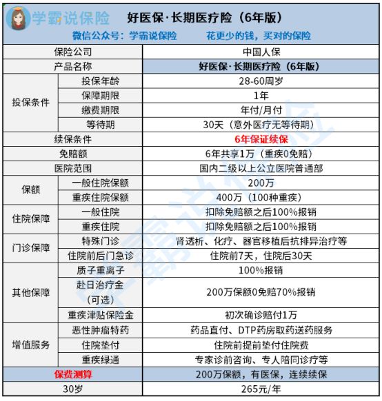 好医保长期医疗险6年版是人保先推出的一款医疗险,具体保障内容可以先看看下面这张表格图: