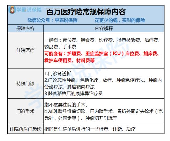 一款百万医疗险如何才算保障全面呢?学姐整理了一个详细的图表: