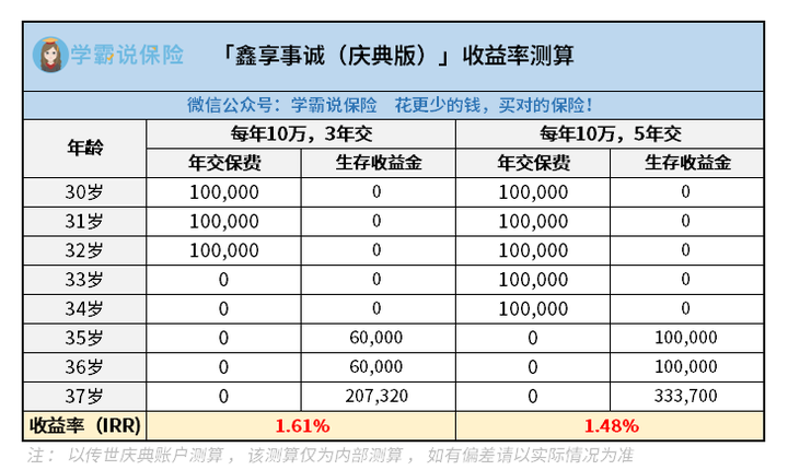 而5年交方案的收益更是让学姐大跌眼镜,交了50万,返回53万,收益率连1.5%都不到……