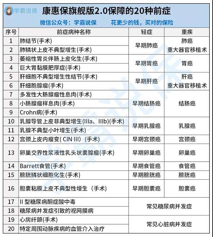 那康惠保旗舰版2.0到底保哪些前症疾病?学姐将其整理如下图: