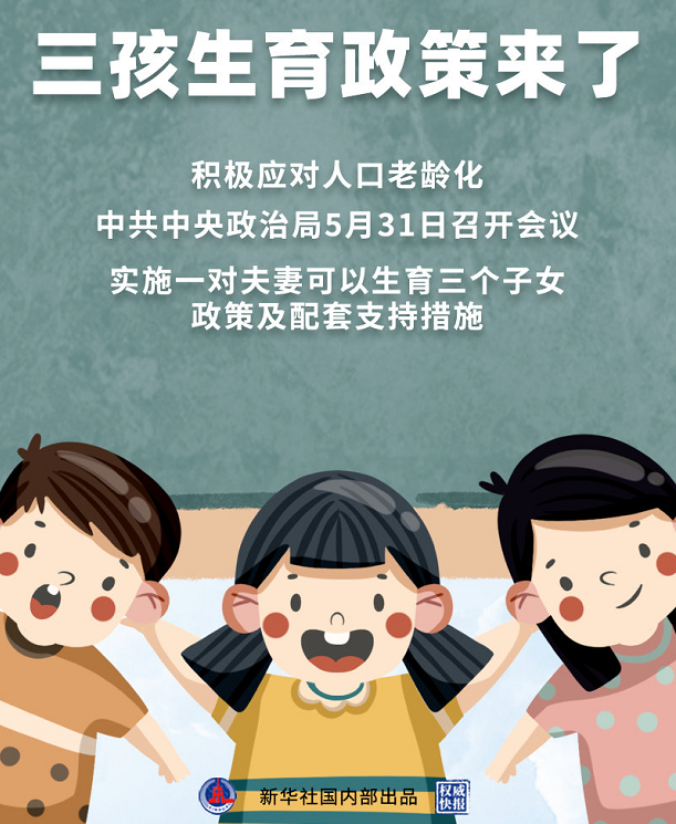 看到这个题目,学姐就想起来近期的一个热点,即“三孩生育政策”,如下图: