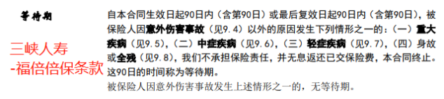 等待期越短,被保人就越早能获得产品保障。福倍倍保的等待期只有90天,为市面最优水准,对被保人而言是非常贴心的。