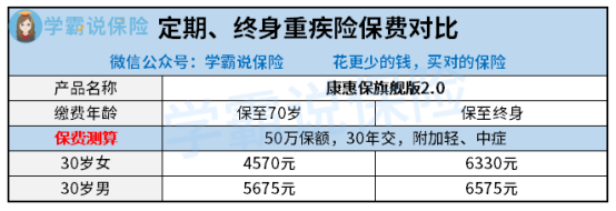 由表格可以看出,保障定期和保障终身两个的保费差距还是蛮明显的。