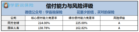 可见,同方全球和国华人寿两家保险公司的偿付能力都远超达标水平,都是值得被信赖的公司。