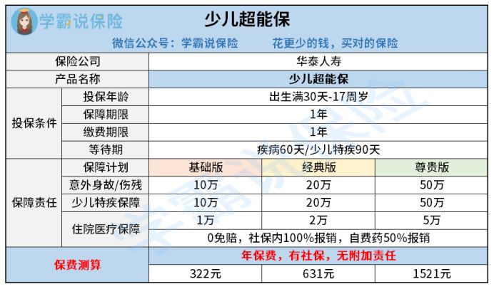 综上所述,华泰人寿的这款少儿超能保有明显的的优点,也有很明显的缺陷。