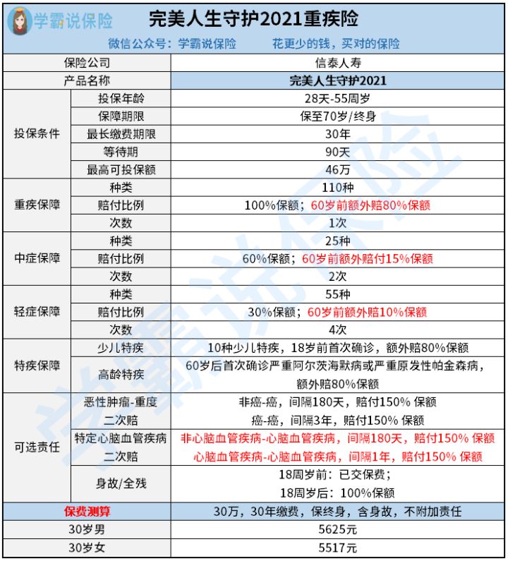 下面就跟学姐一起来看看完美人生2021重疾险有什么亮点和不足: