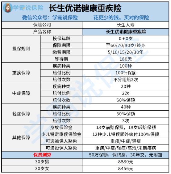 综合来说,学姐是不建议35岁人群购买长生优诺健康重疾险的。