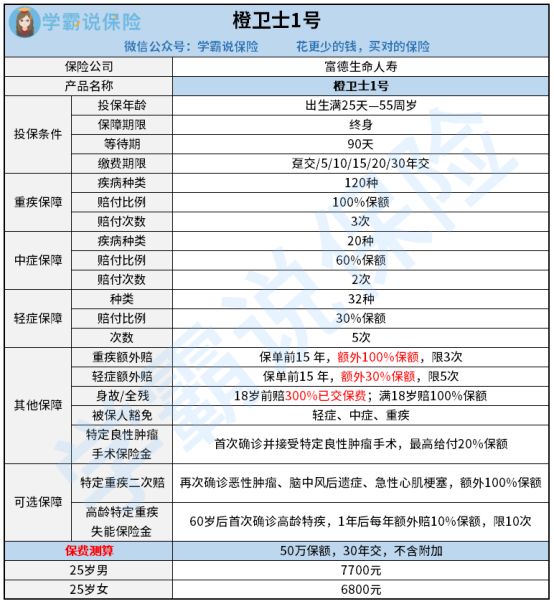 那今天我们就来测评一下橙卫士一号重疾险,看看是否值得25岁人群购买。