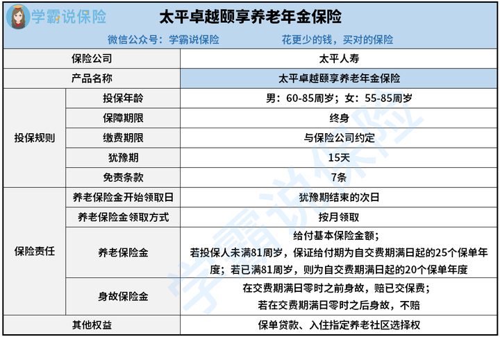 话不多说,我们先来看看太平卓越颐享养老年金保险的产品图: