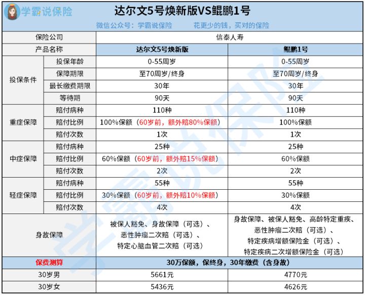 达尔文5号焕新版和鲲鹏1号这两款重疾险都是信泰人寿今年上新的热门重疾险产品。