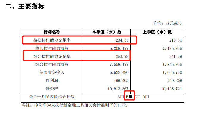 银保监会规定,核心偿付能力充足率在50%以上,综合偿付能力充足率在100%以上,风险评级为B级及以上的公司,偿付能力才能算达标。