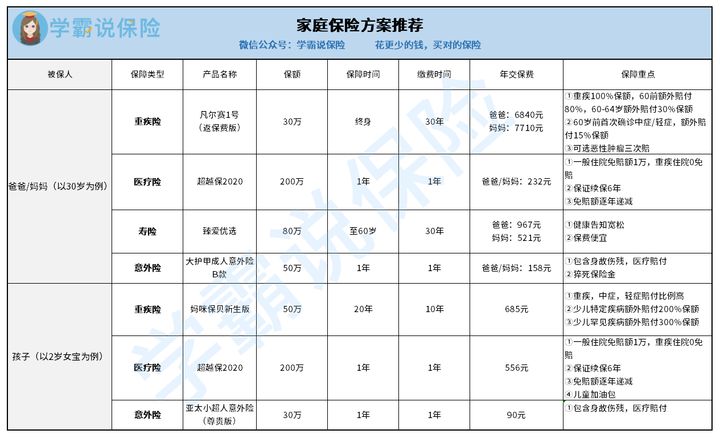 >>值得家庭配置的保险方案推荐!
