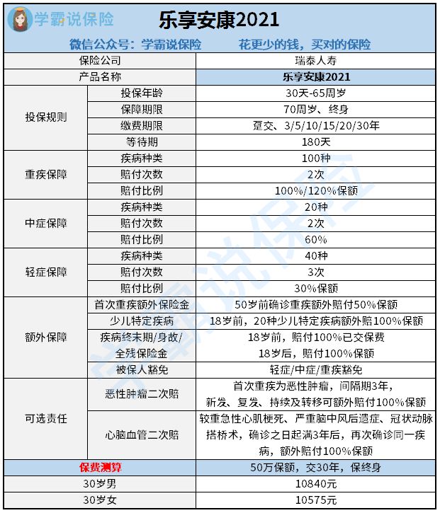 老规矩,先来看看学姐辛苦整理的乐享安康2021精华保障图: