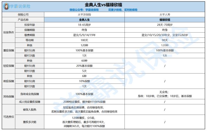 从基本保障上看,福禄欣禧的保障力度就比不上金典人生了。