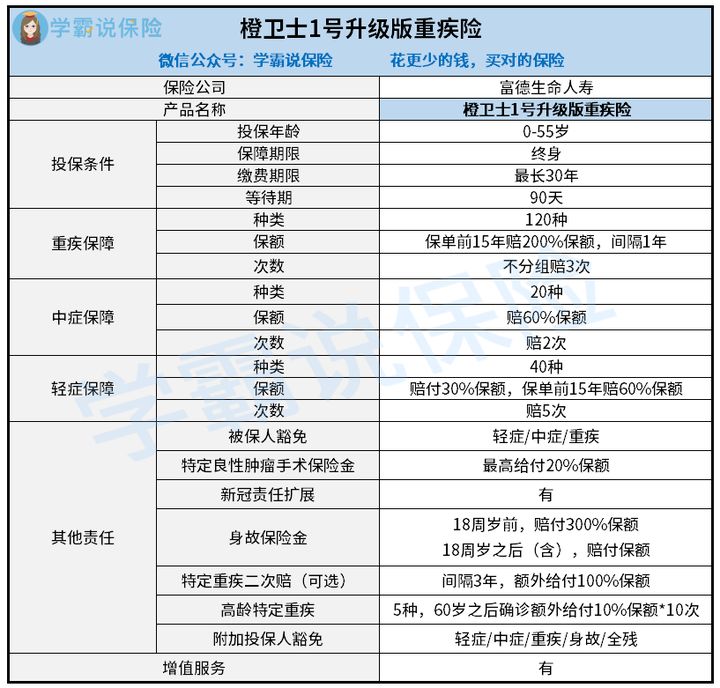 鉴于富德橙卫士1号升级版在未成年人方面保障出色,学姐比较建议父母给孩子购买!