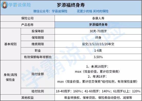 综合来看,岁添福终身寿险的投保门槛比较低。