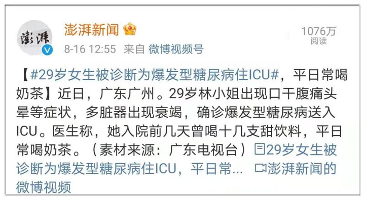 这个数字可不是小数目哦,而且现在疾病越来越年轻化,前段时间广州一位29岁的女生被确诊出爆发型糖尿病,如下图: