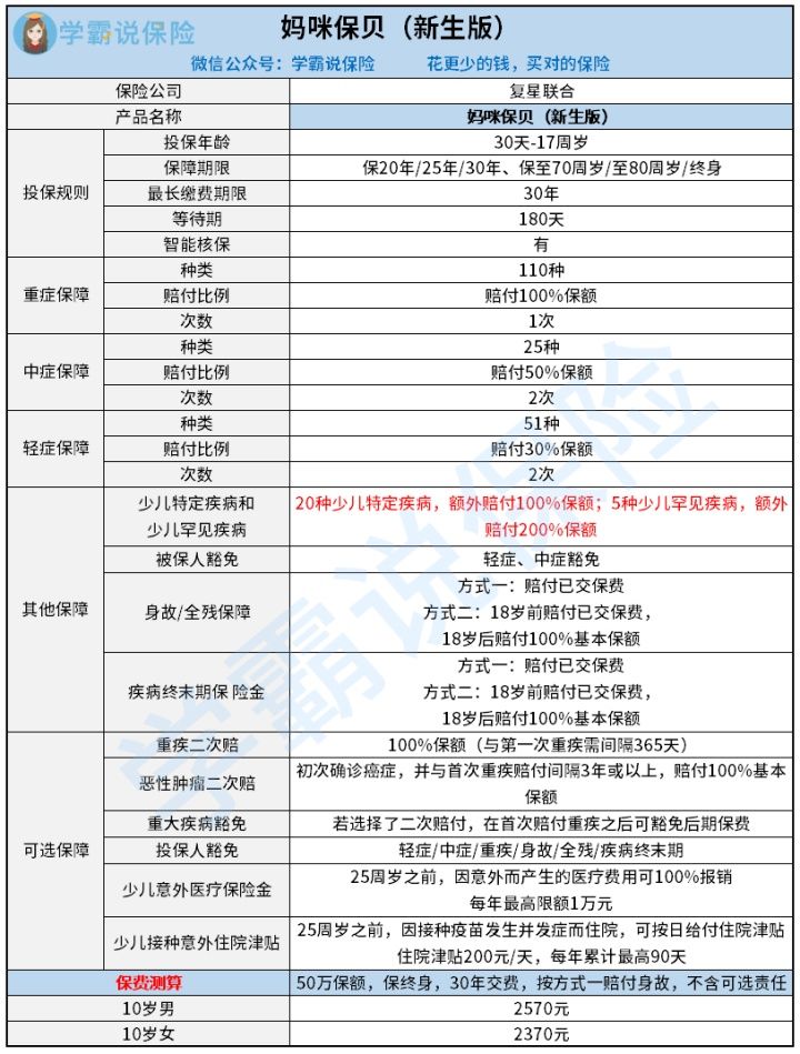 新产品妈咪保贝新生版,还是有这些不足......weixin.qq.275.com此外,学姐还得提醒各位,单单给孩子买重疾险还是不够的,还需要同时配置这些保险才能给孩子全方位的保障...
