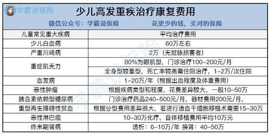 学姐整理了一份少儿高发重疾治疗费用的表格,大家可以看一下: