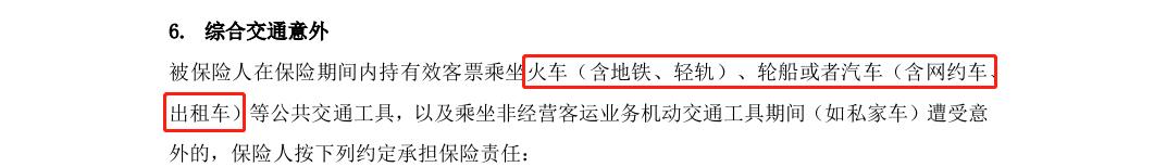 除了基本保障和猝死保障,大保镖意外还有航空和综合交通意外的保障。综合意外包含“火车、地铁、轻轨、轮船、汽车”日常 用到的交通工具基本都覆盖了。