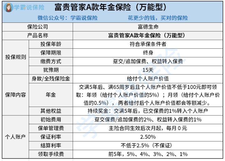 趁这个机会,学姐今天就富德生命人寿保险公司的富贵管家A款年金保险(万能型)做一个测评,同时让我们一起来学习“万能账户”那些不为人知的事吧!