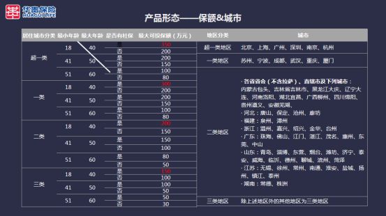 各位可以看到,350万的保额只能在超一类城市,而且还得年龄在18-40岁之前才可以,不符合这些要求,想投保350万保额?没机会啦。