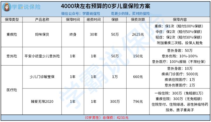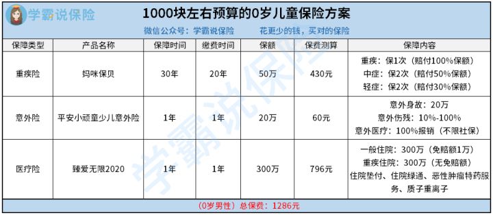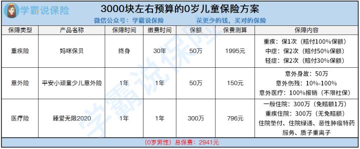 二、3套保险方案,教你如何给孩子买对保险考虑到每个家庭的经济情况不同,我准备了三种宝宝保险方案: