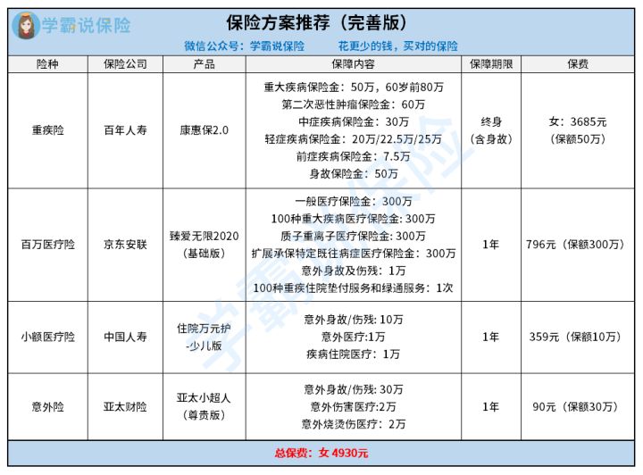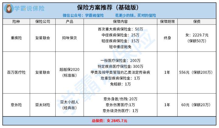 学姐根据家庭经济条件不同,做好了两个保险方案,大家可以参考参考。