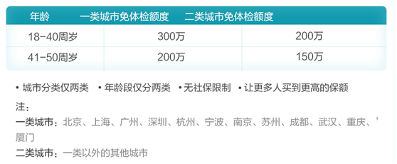 城市仅分为两类,一类城市最高可享用300万免体检额度,二类城市最高可享用200万免体检额度。